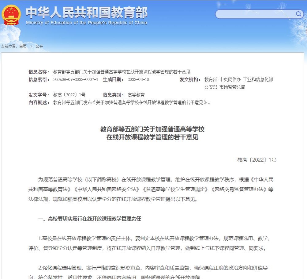 《意見》要求高校切實(shí)履行在線開放課程教學(xué)和對(duì)在線開放課程教師的管理,嚴(yán)格學(xué)生在線學(xué)習(xí)規(guī)范與考試紀(jì)律,完善在線開放課程平臺(tái)自我監(jiān)督機(jī)制,特別提出強(qiáng)化學(xué)習(xí)過(guò)程監(jiān)控,充分運(yùn)用人工智能、大數(shù)據(jù)、區(qū)塊鏈等新一代信息技術(shù),依法依規(guī)對(duì)身份認(rèn)證、課程內(nèi)容、討論記錄、學(xué)習(xí)數(shù)據(jù)實(shí)施監(jiān)控,有效識(shí)別“刷課”“替課”“刷考”“替考”行為。